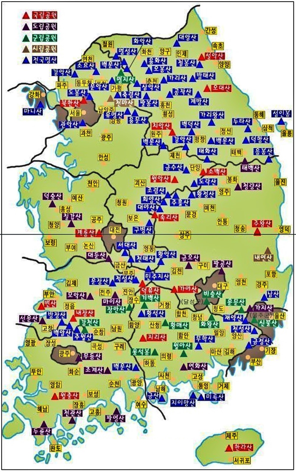 한국의 산하/ 산림청/ 아웃도어 브랜드 등에서 선정한 100대 명산 중